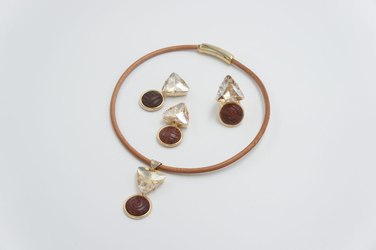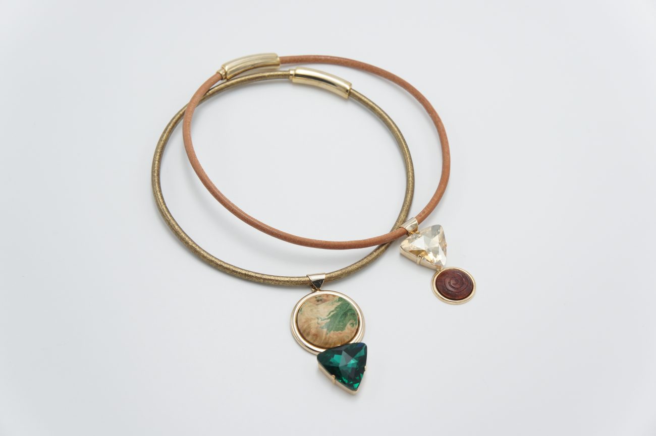 Leather choker with hand carved bubinga cabochon and crystal