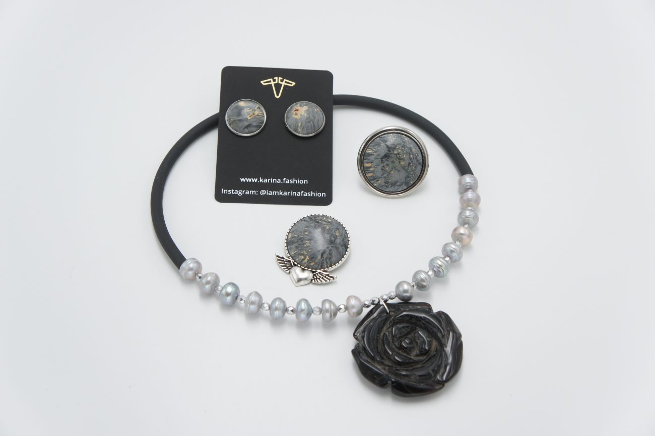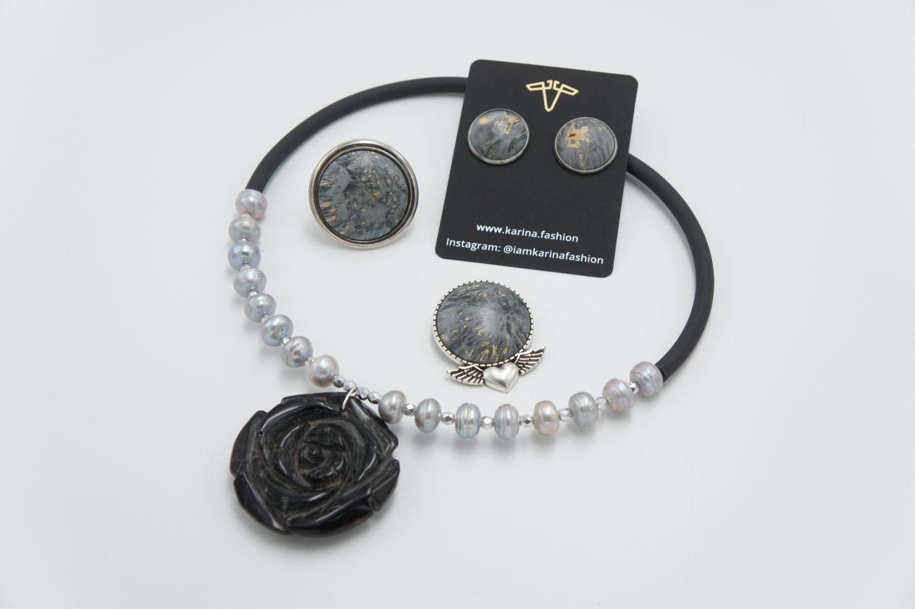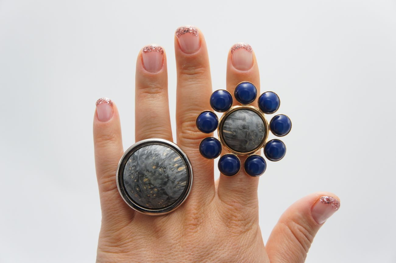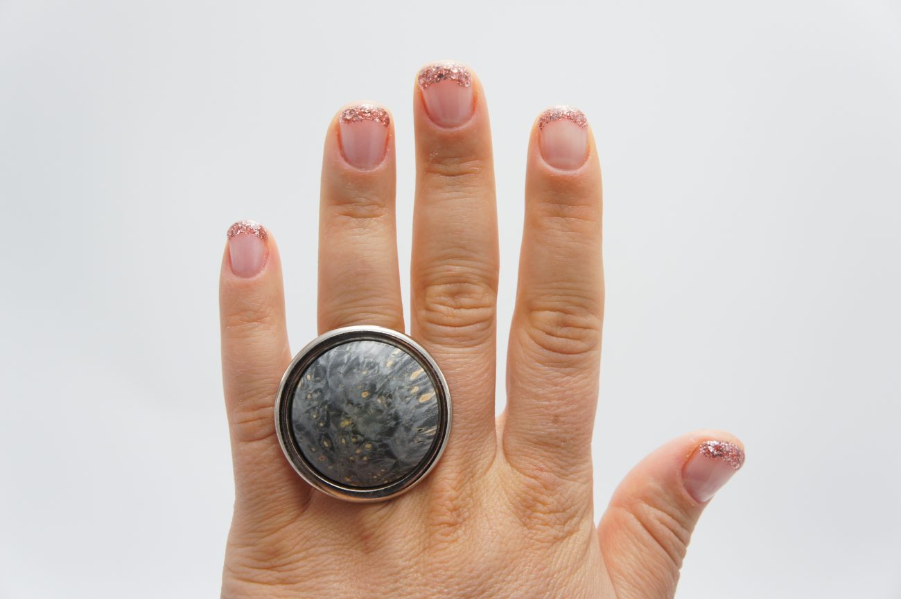 Silver plated ring with hand carved stabilized wood cabochon, adjustable size