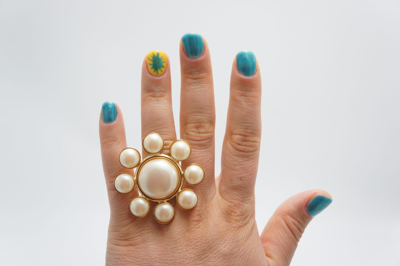 Golden ring with pearls, adjustable size