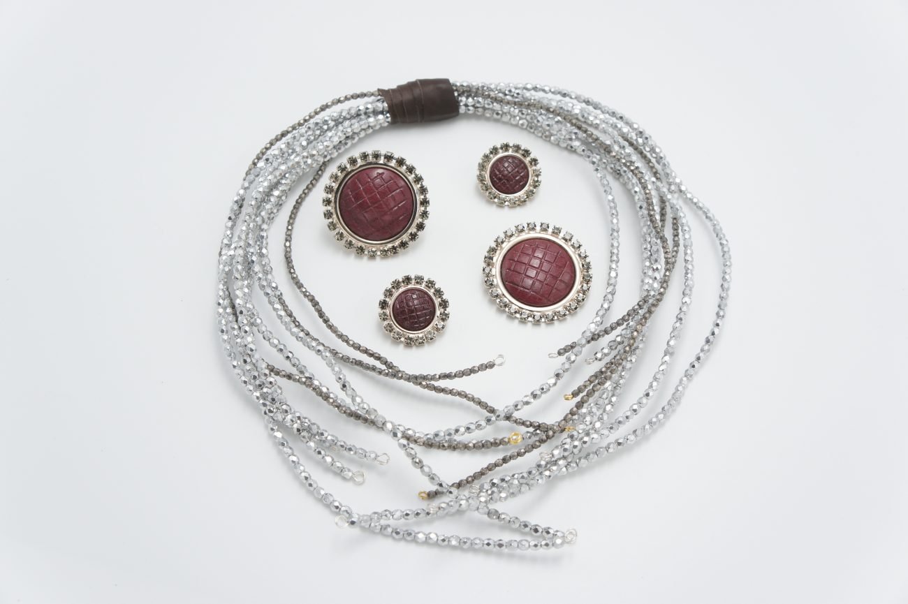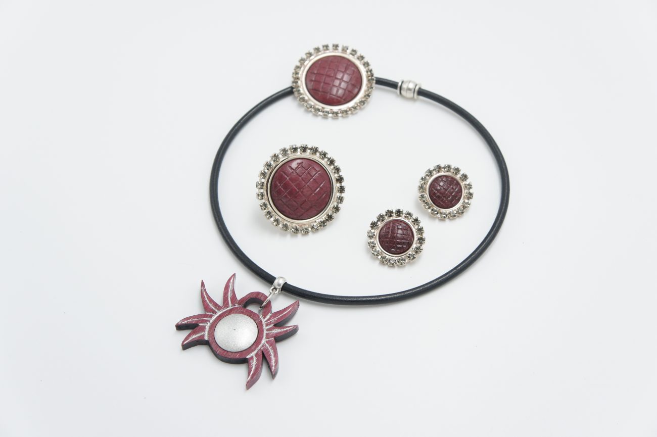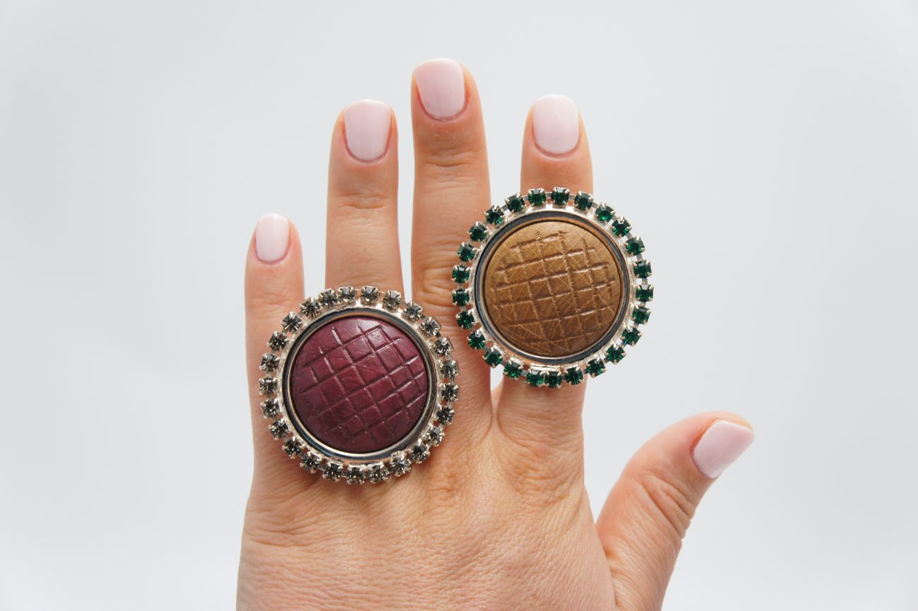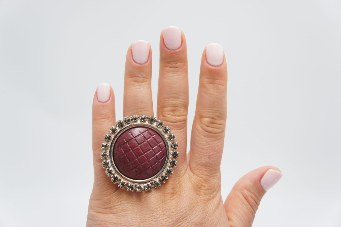 Silver plated ring with crystals and hand carved purple heart wood cabochon, adjustable size