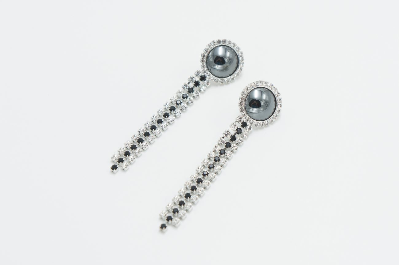Silver plated earrings with crystals and hematite cabochons