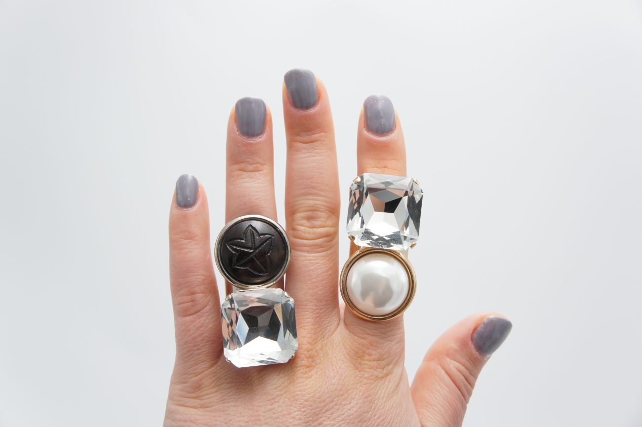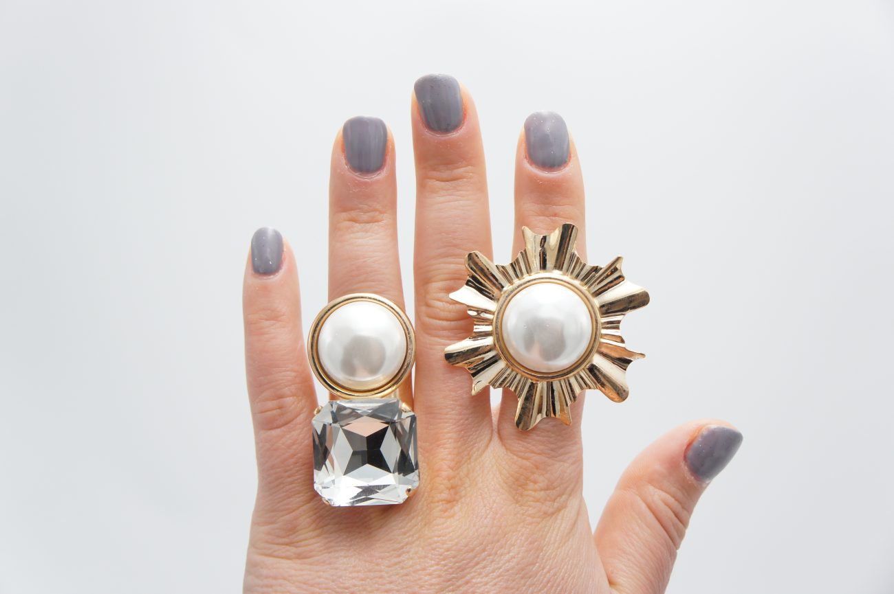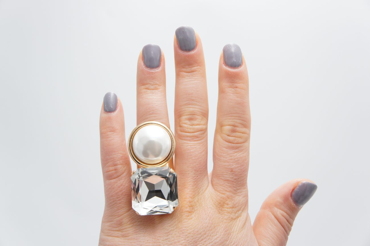 Golden ring with pearl and crystal