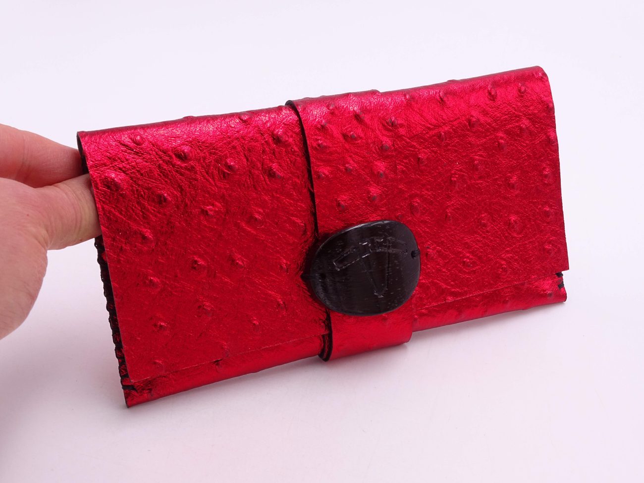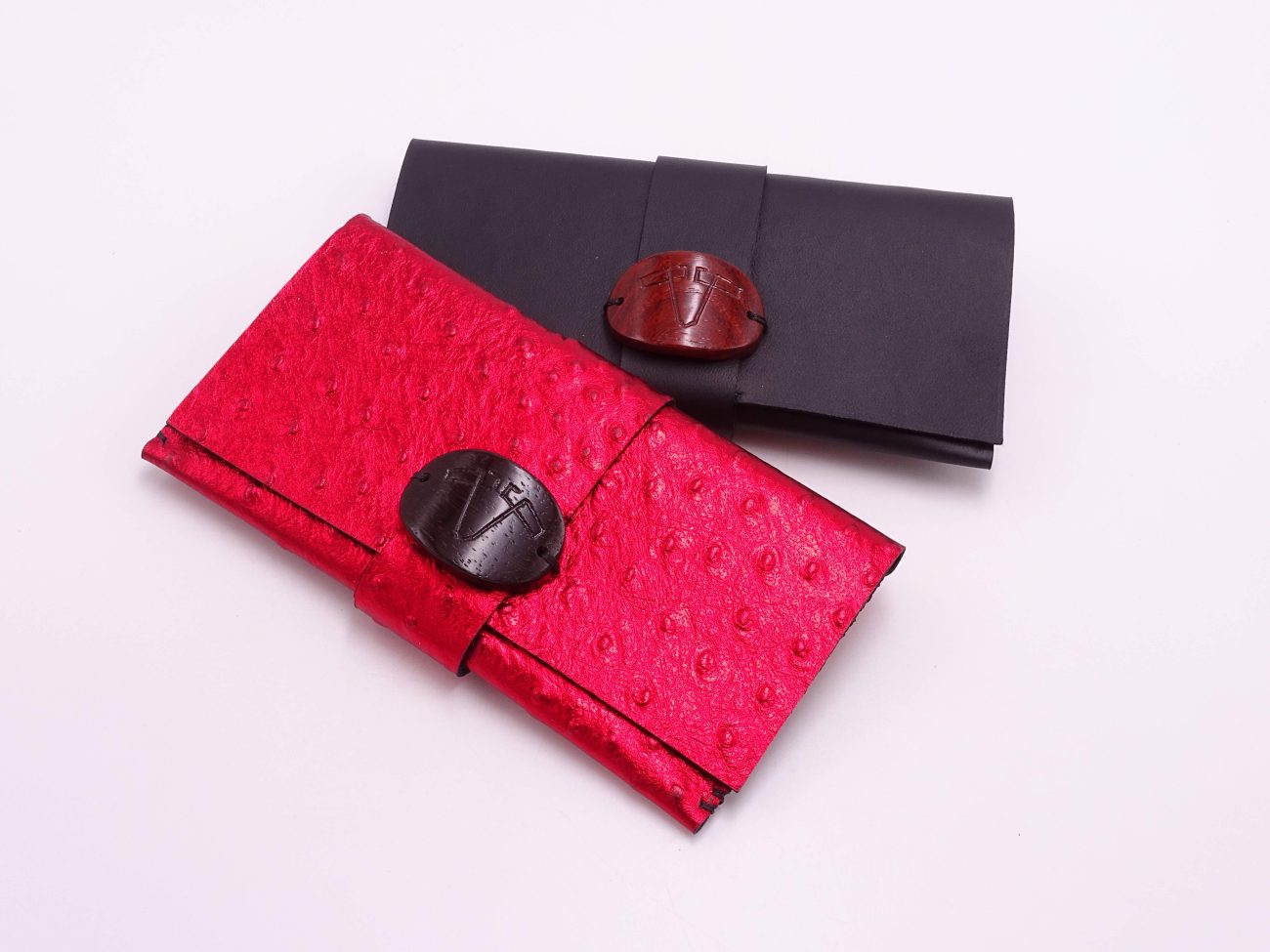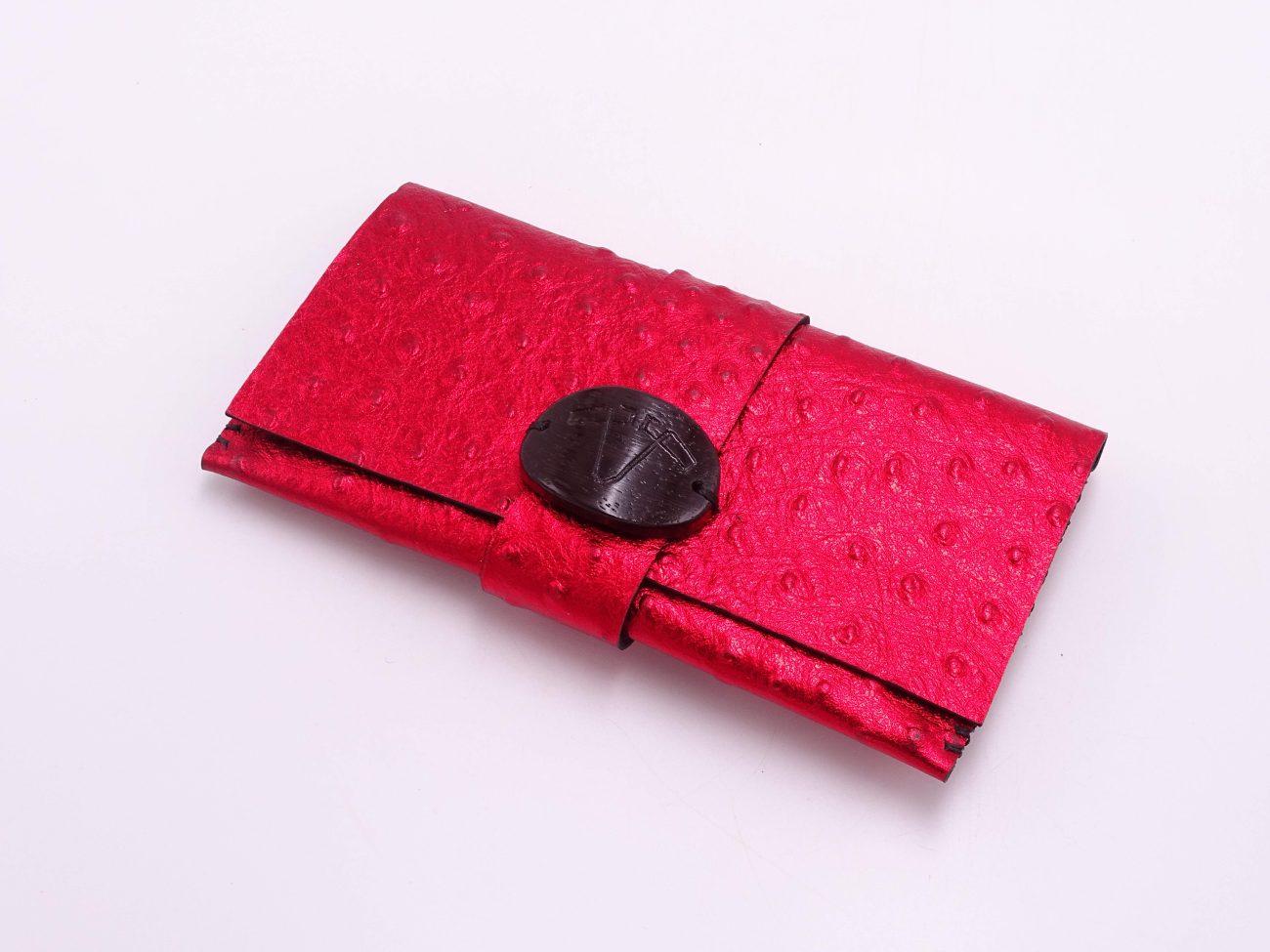 Leather wallet with hand carved wenge wood Karina Fashion logo