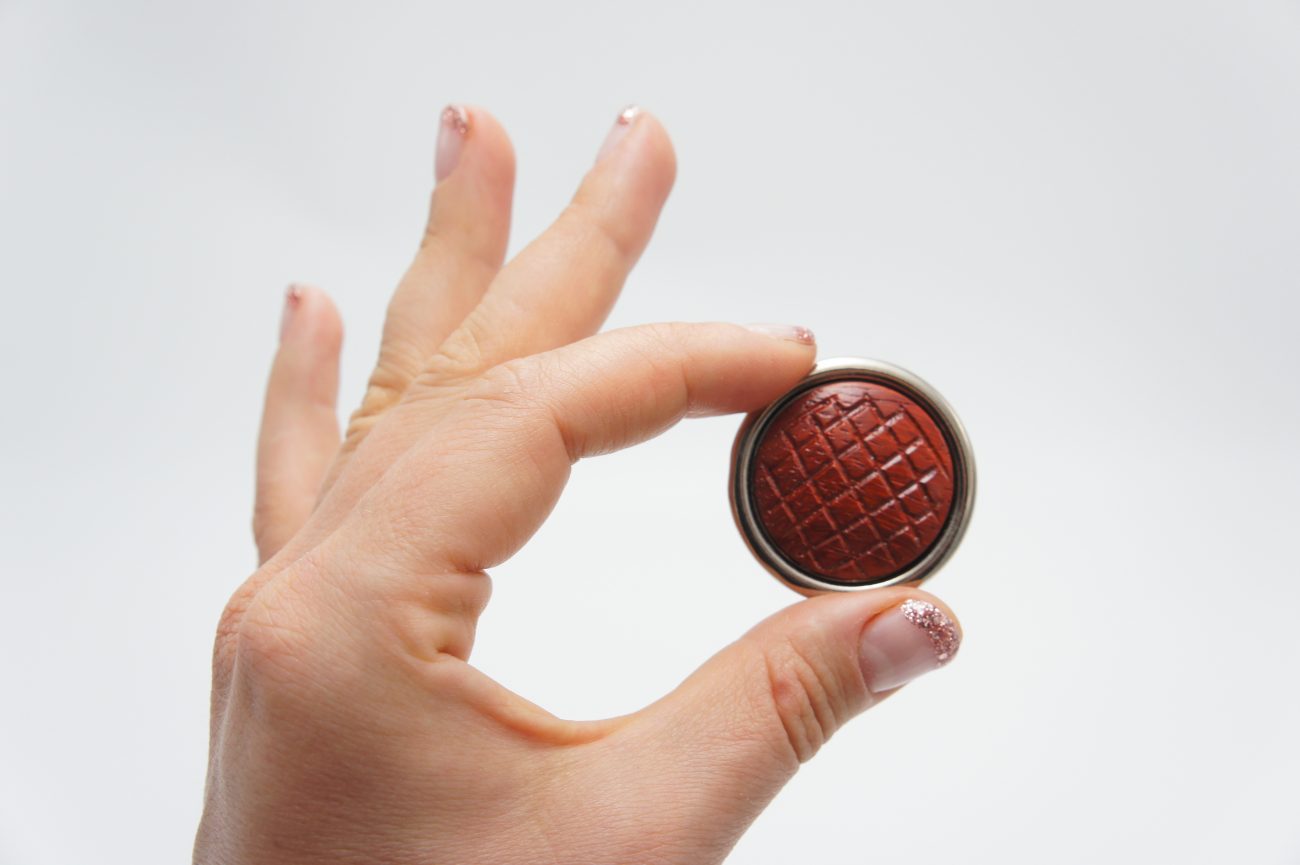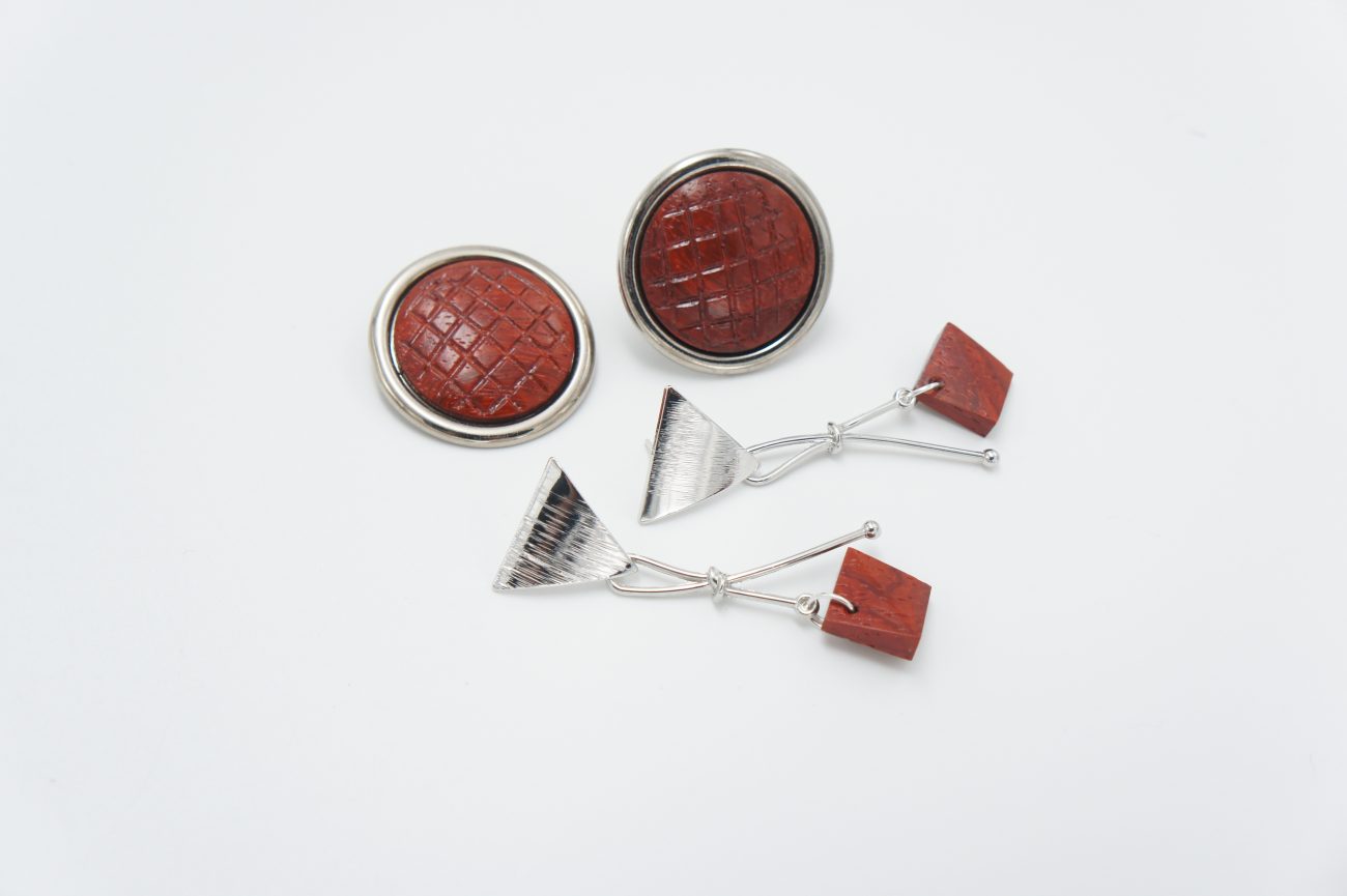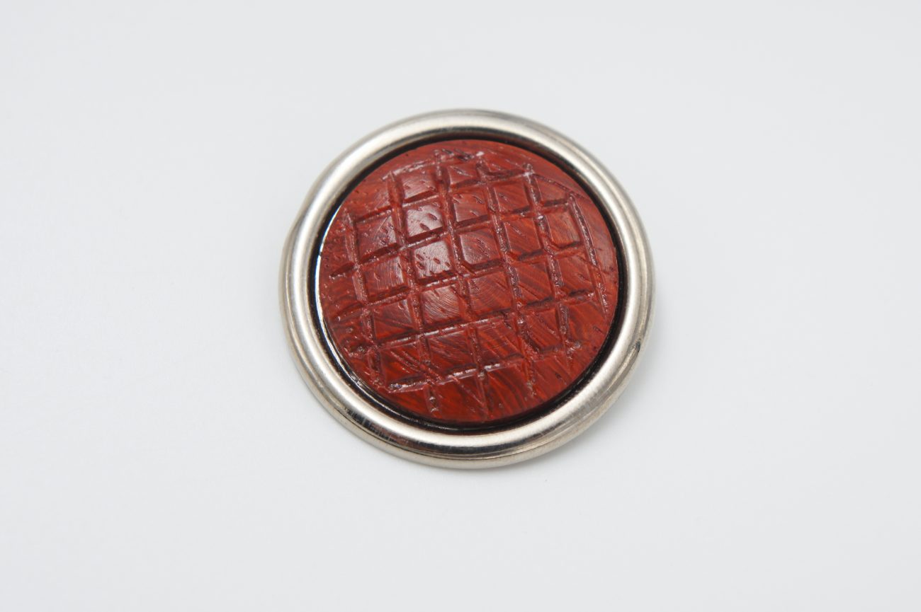 Silver plated brooch with hand carved padauk cabochon