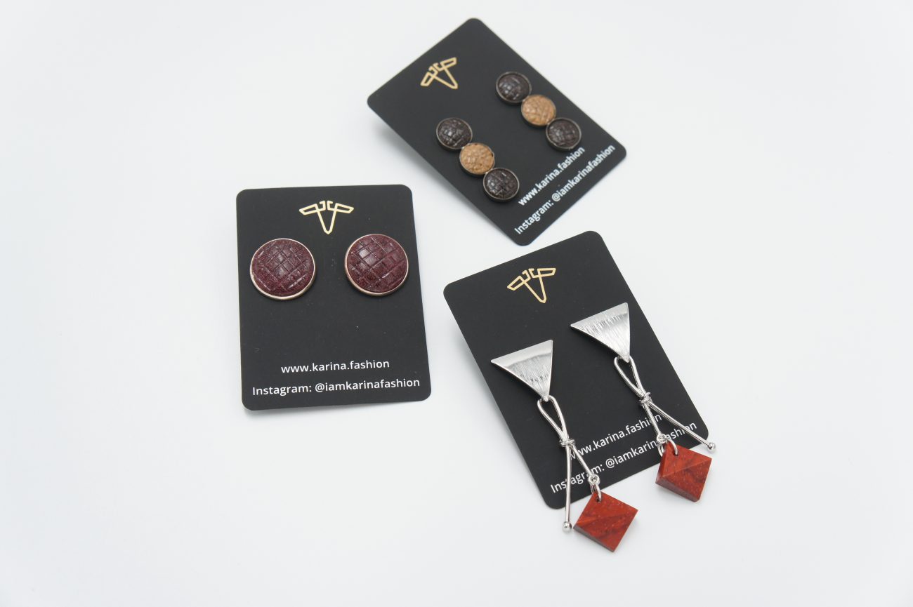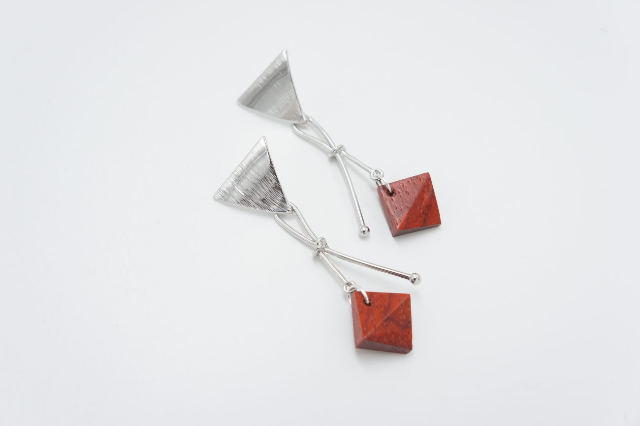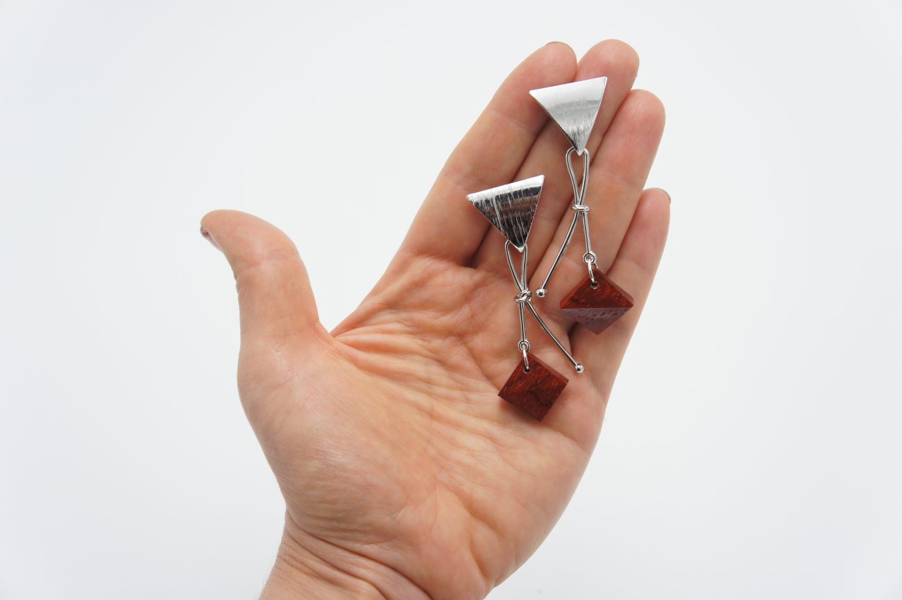 Silver plated earrings with hand carved padauk elements