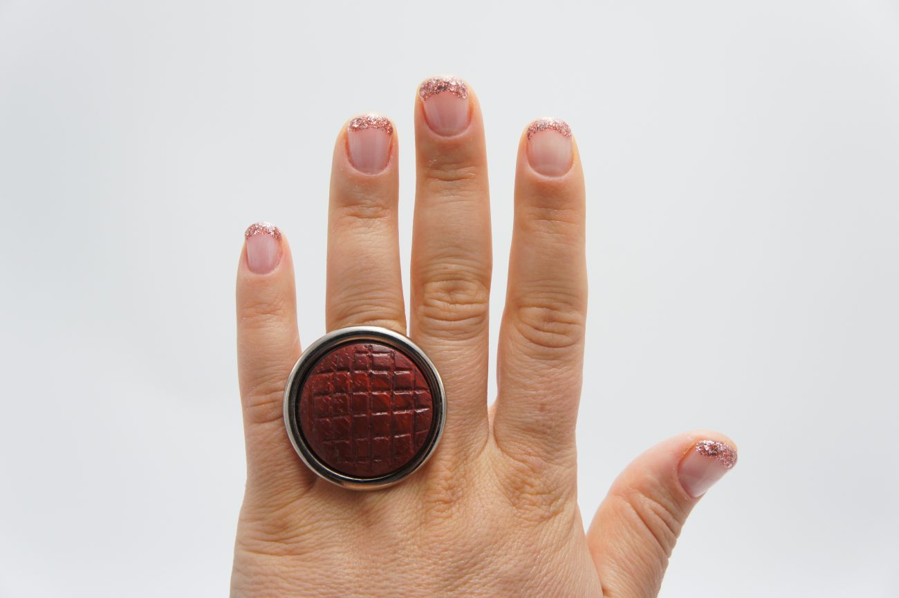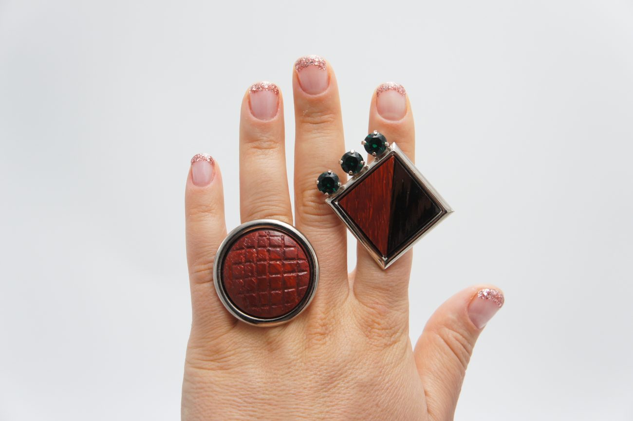 Silver plated ring with hand carved padauk element, adjustable size